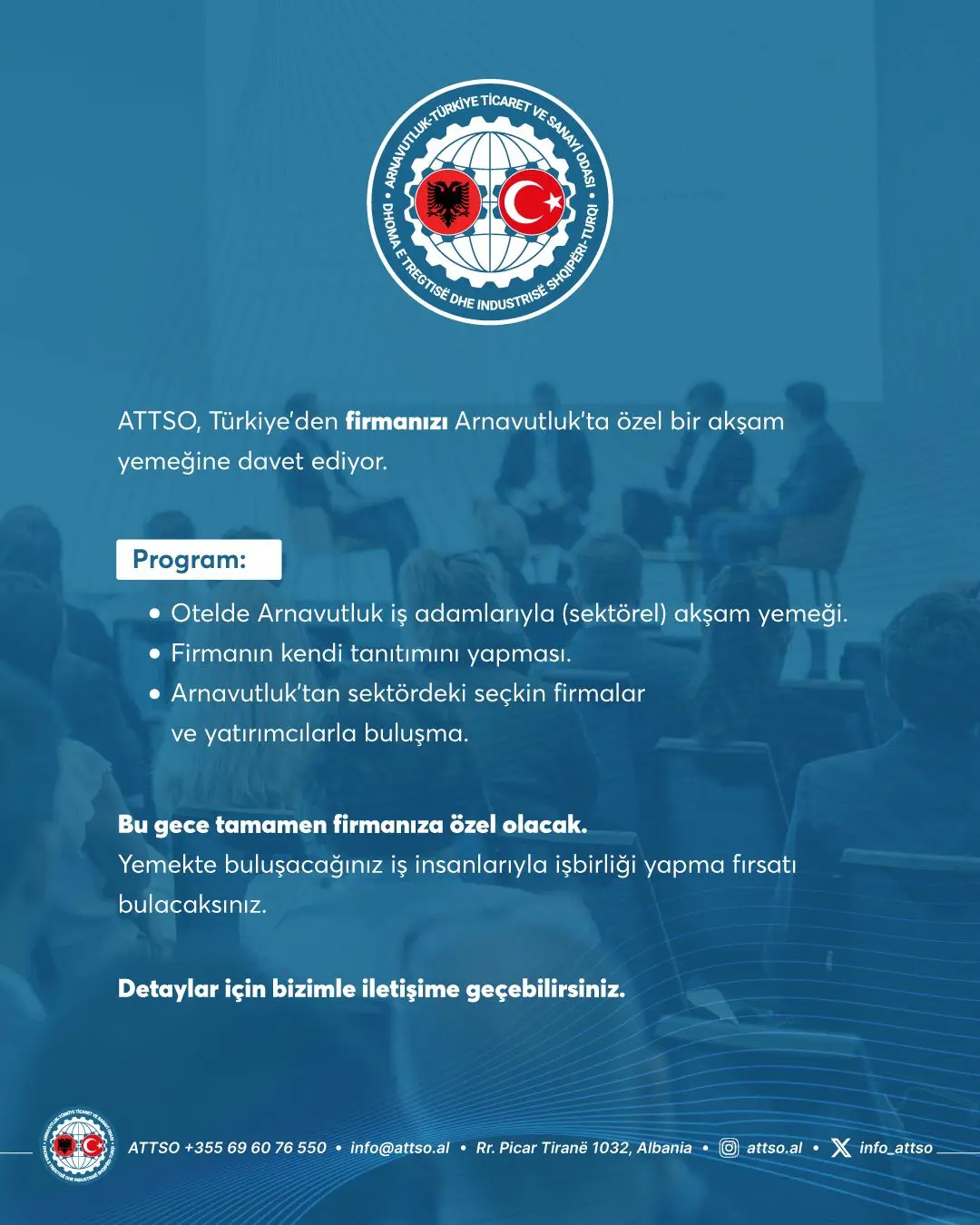 ATTSO Yıl Sonu Kokteyli, Maliye ve Ekonomi Bakan Yardımcısı Sayın Besart Kadia, Türkiye Cumhuriyeti Tiran Büyükelçisi Sayın Murat Ahmet Yörük, Türkiye Odalar ve Borsalar Birliği (TOBB) Yönetim Kurulu Üyesi Sayın Cengiz Günay, seçkin davetliler ve üyelerimizin katılımıyla gerçekleşti. [...]