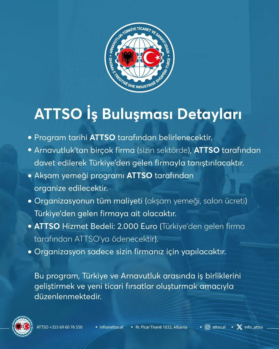 ATTSO olarak, Arnavutluk’un Avrupa Birliği ile üyelik müzakerelerine başlama aşamasına gelmiş olmasından dolayı memnuniyet duyuyor, müzakere sürecinin en kısa sürede başarıyla tamamlanmasını diliyoruz!